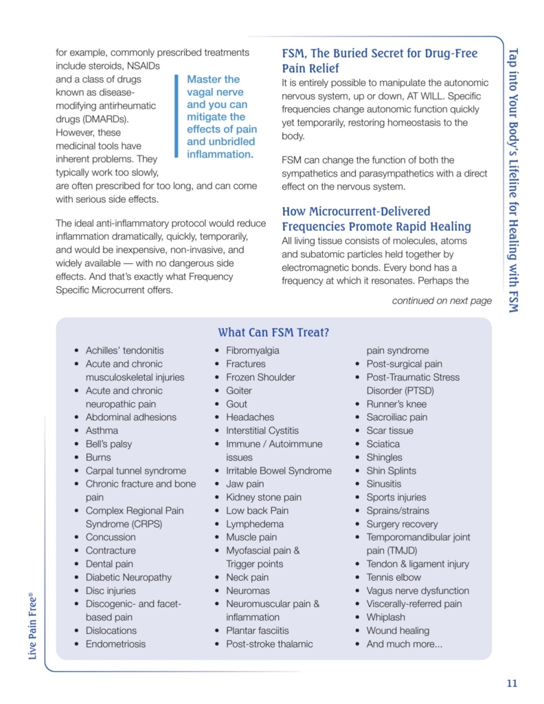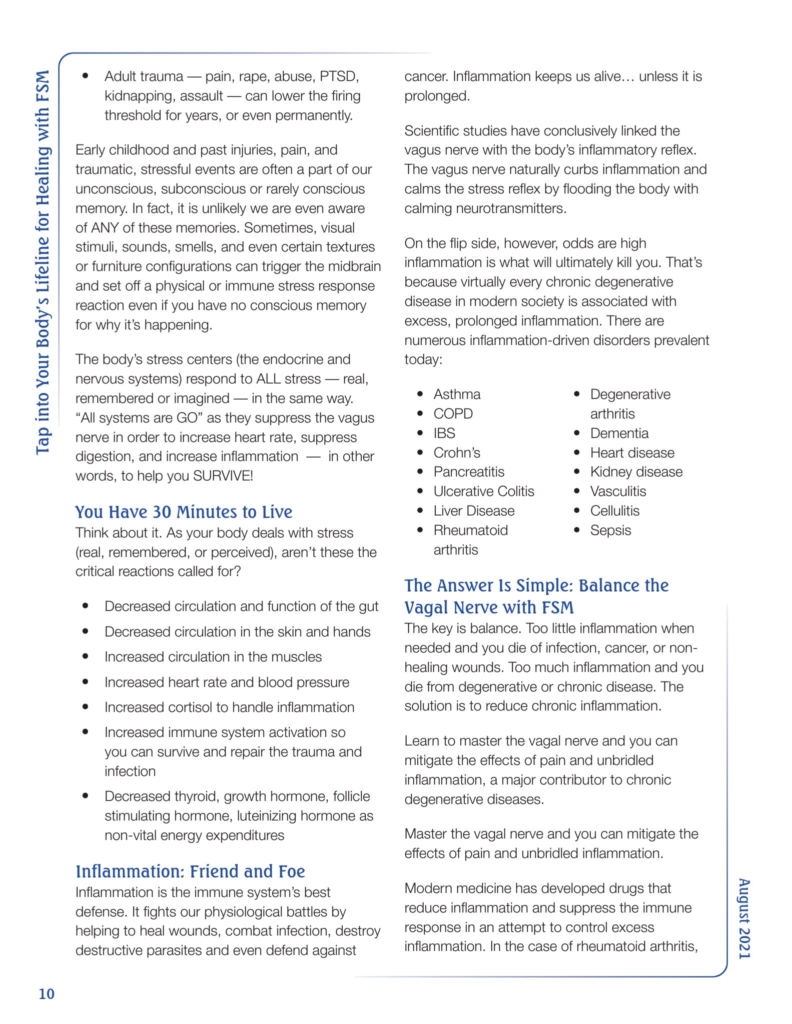 < Back to Articles August 7, 2021 Live Pain Free – Tap into Your Body’s Lifeline for Healing with FSM Carolyn McMakin, MA, DC Live Pain Free – August 2021 Issue
